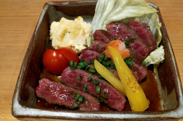 表面はカリッと、中はレアな状態となるよう、丁寧に焼き上げた一品。ポン酢でさっぱりお召し上がりいただくのがおすすめです!