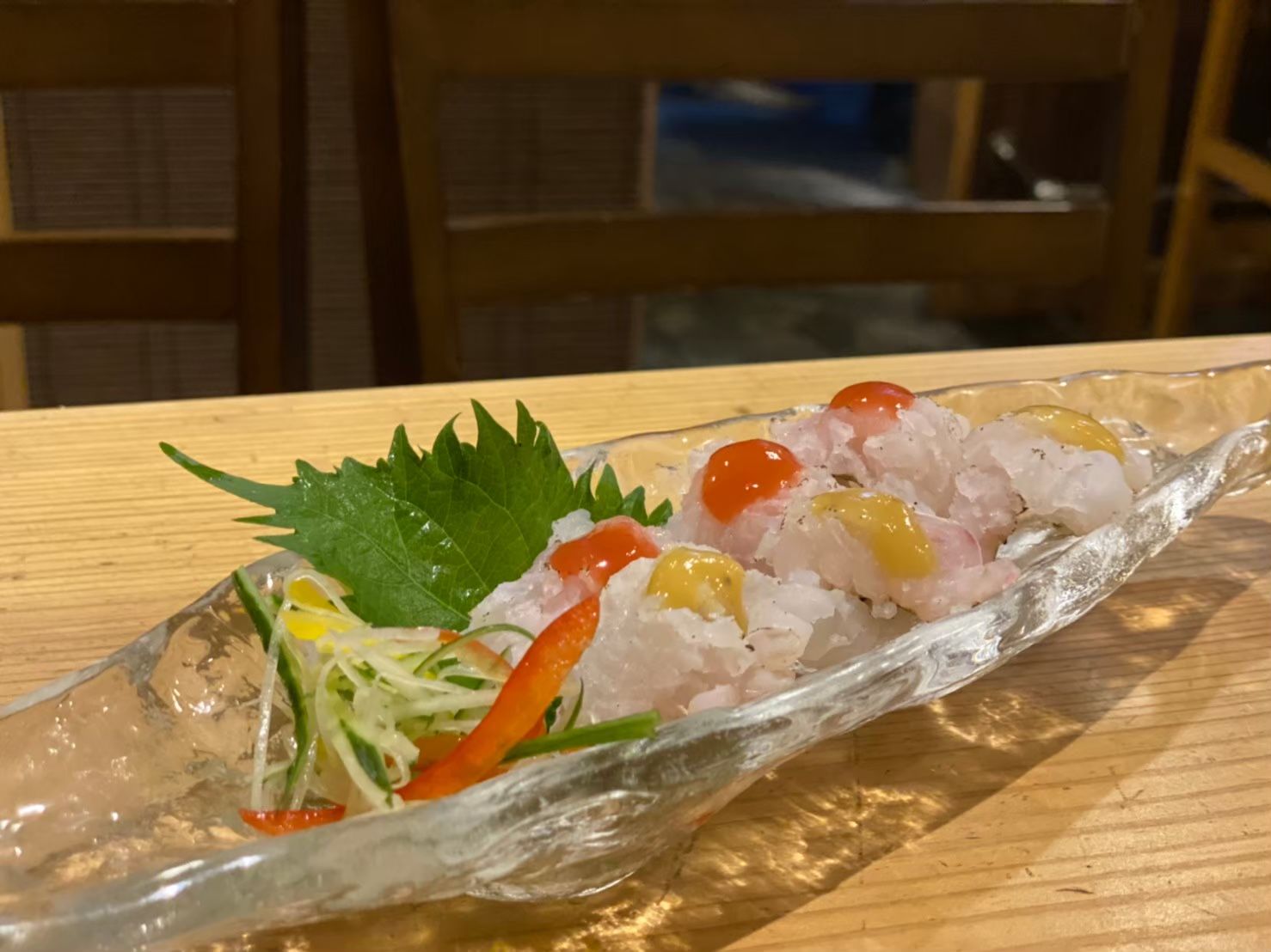 白身で透き通った身にはコラーゲンも多く、美容や健康にも良いとされています。鮮度の高いものしかお造りとして出すことができない為、ミナミでも食べる事ができる店はそうないのではないでしょうか。唐揚げ、たたきも独特でクセになる食感はぜひとも一度召し上がっていただきたい逸品です。